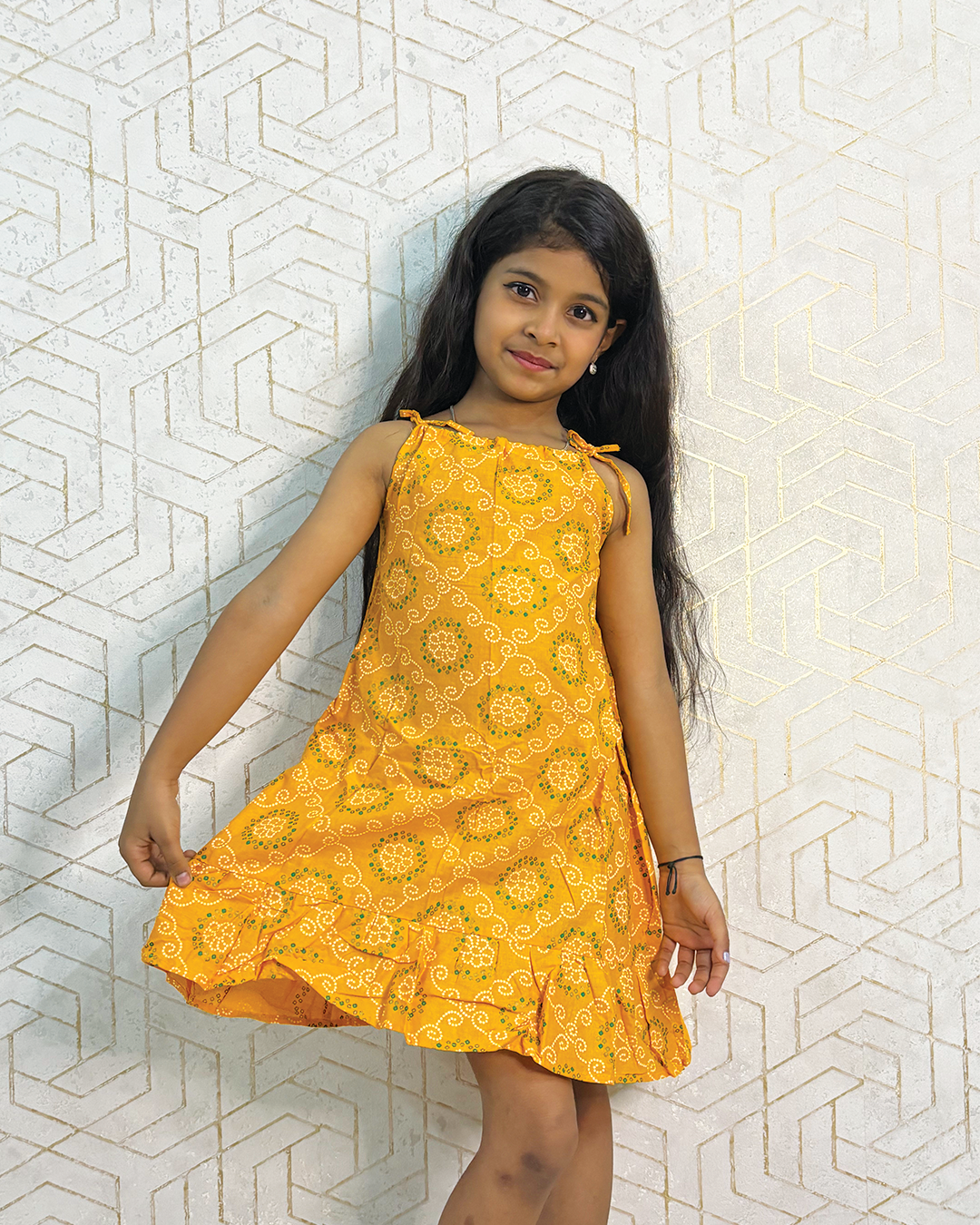 A rich mustard yellow with delicate white floral prints – gives an effortlessly vibrant and cheerful vibe. - Play-Ready Comfort:
